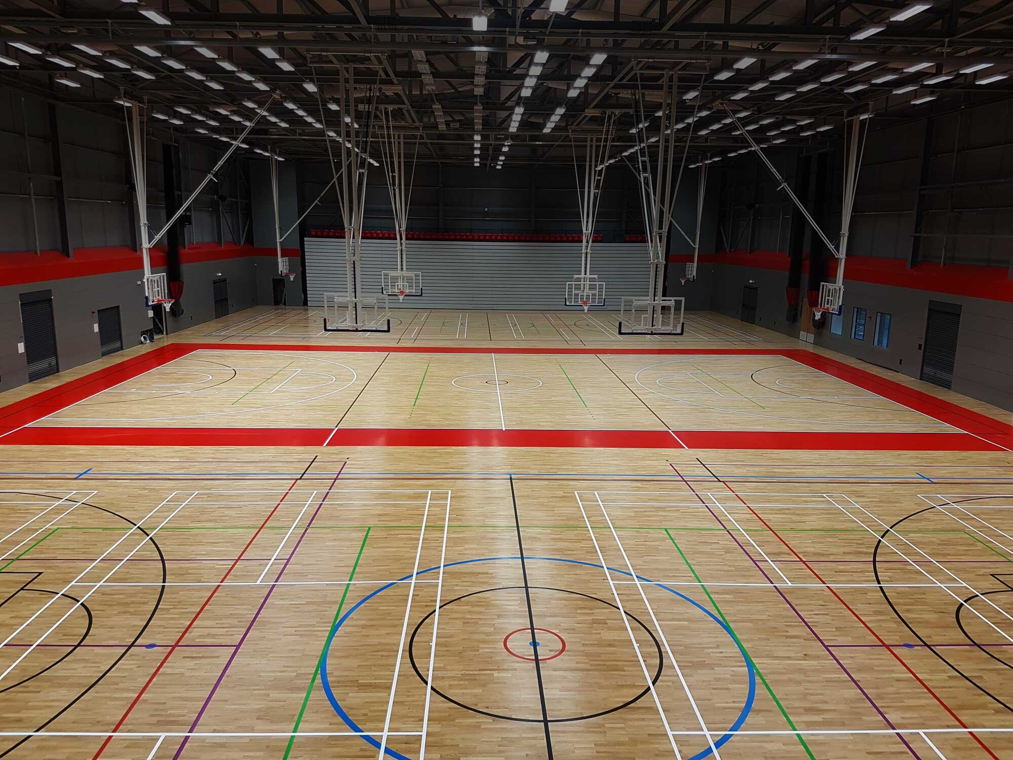 Линии наносятся с учётом совмещения нескольких видов спорта, применяются вспомогательные и дополнительные линии с разной цветовой маркировкой .